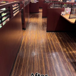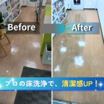 洗浄後、Wax仕上げを行うことで床面に艶を与え、美しい光沢がよみがえりました。
