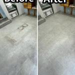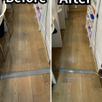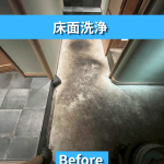 日常のお掃除では落ちにくくなっていた床面の黒ずみも、専用の薬剤で綺麗に落としていきます。