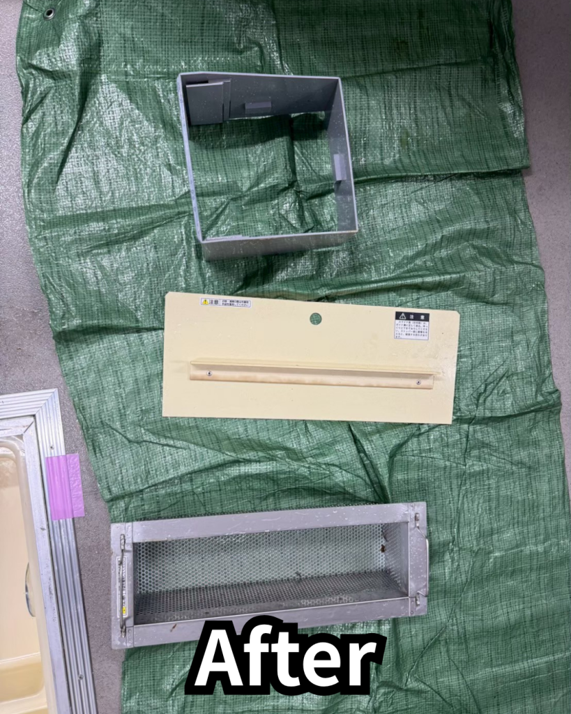取り外せるパーツはすべて分解し、一つひとつ手作業で洗浄を行いました。
