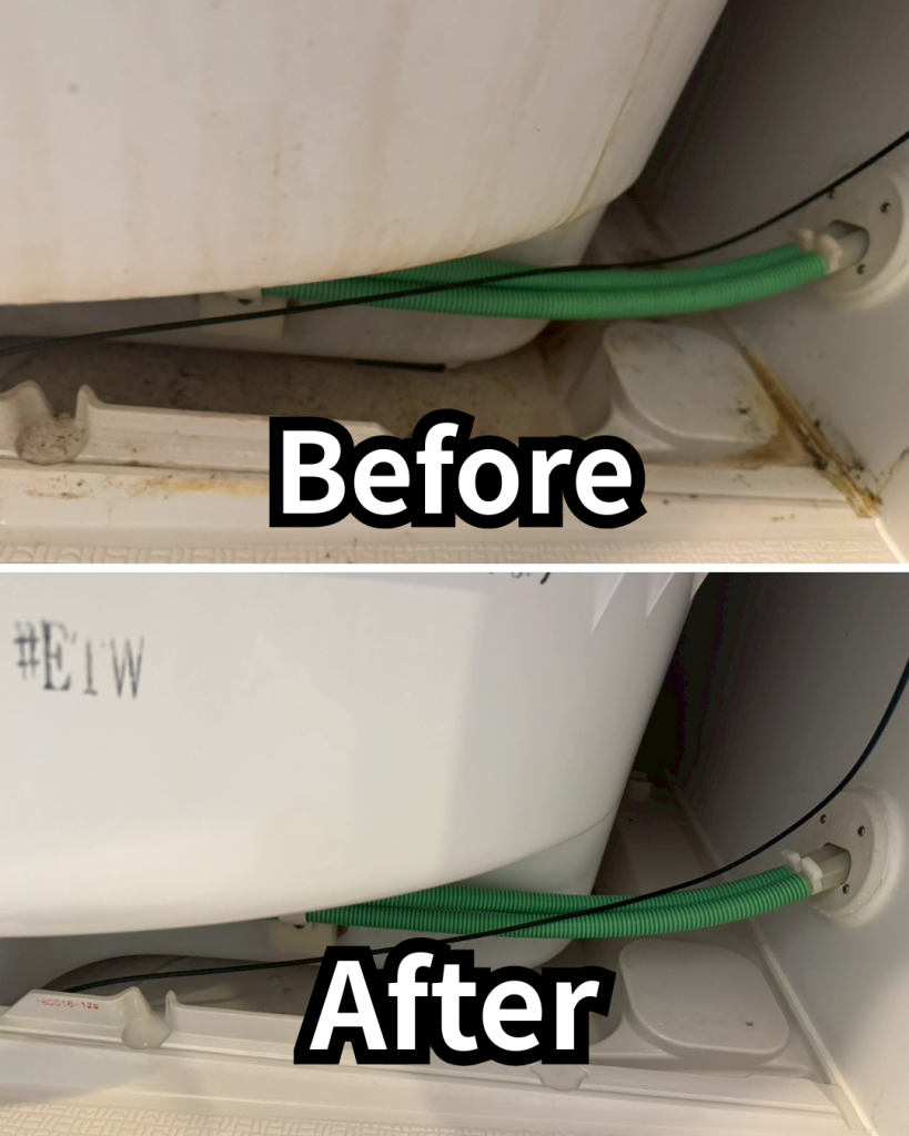 施工前は、浴槽の側面やエプロン内部まわりに汚れの付着が見られましたが、施工後はスッキリとした印象に。日常清掃では落としきれない汚れも、細かい部分までしっかり対応することで、浴室全体の見た目が整います。