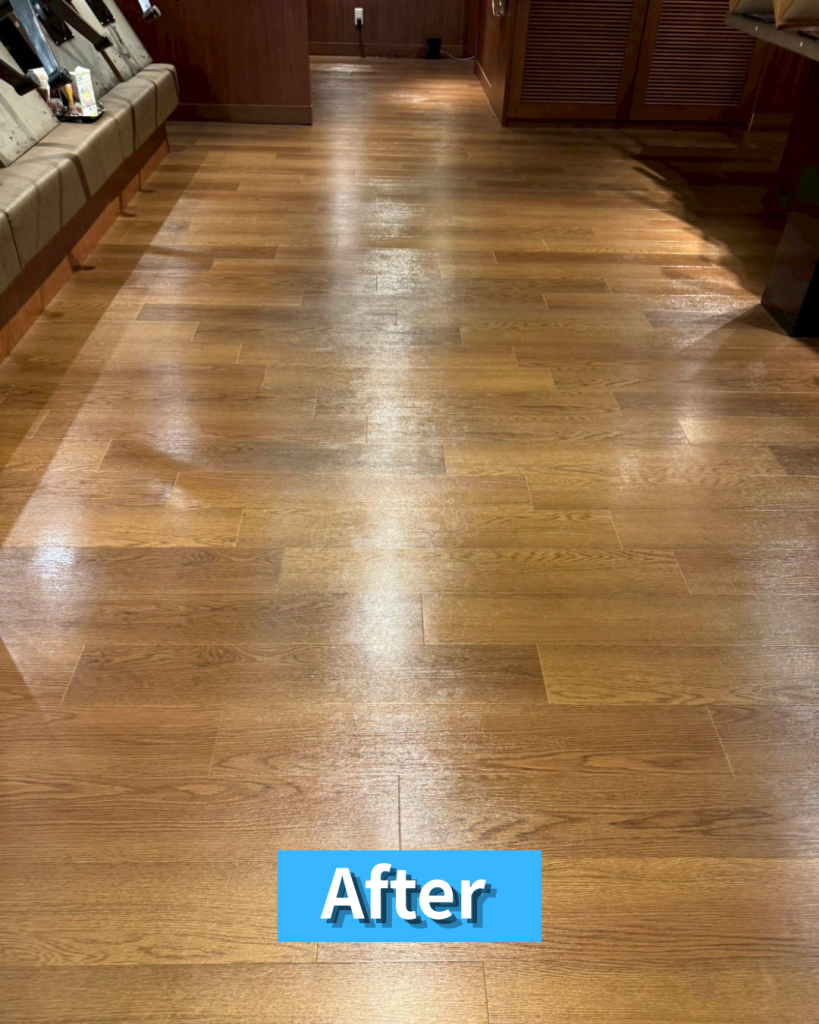 日常清掃では取りきれない黒ずみや皮脂汚れを丁寧に洗浄し、床本来の明るさと清潔感が感じられる状態へ整えています。