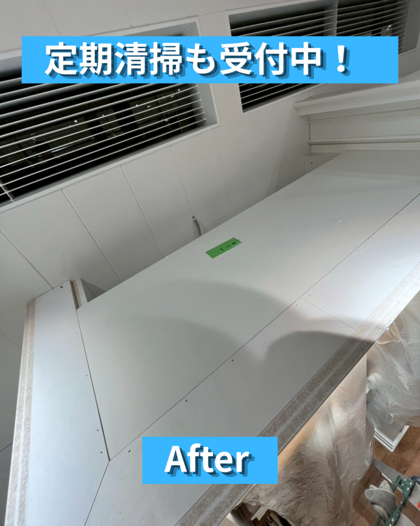 定期的に高所や設備まわりまでリセットしておくことで、日常清掃の負担軽減にもつながり、店舗全体をきれいな状態で維持しやすくなります。
